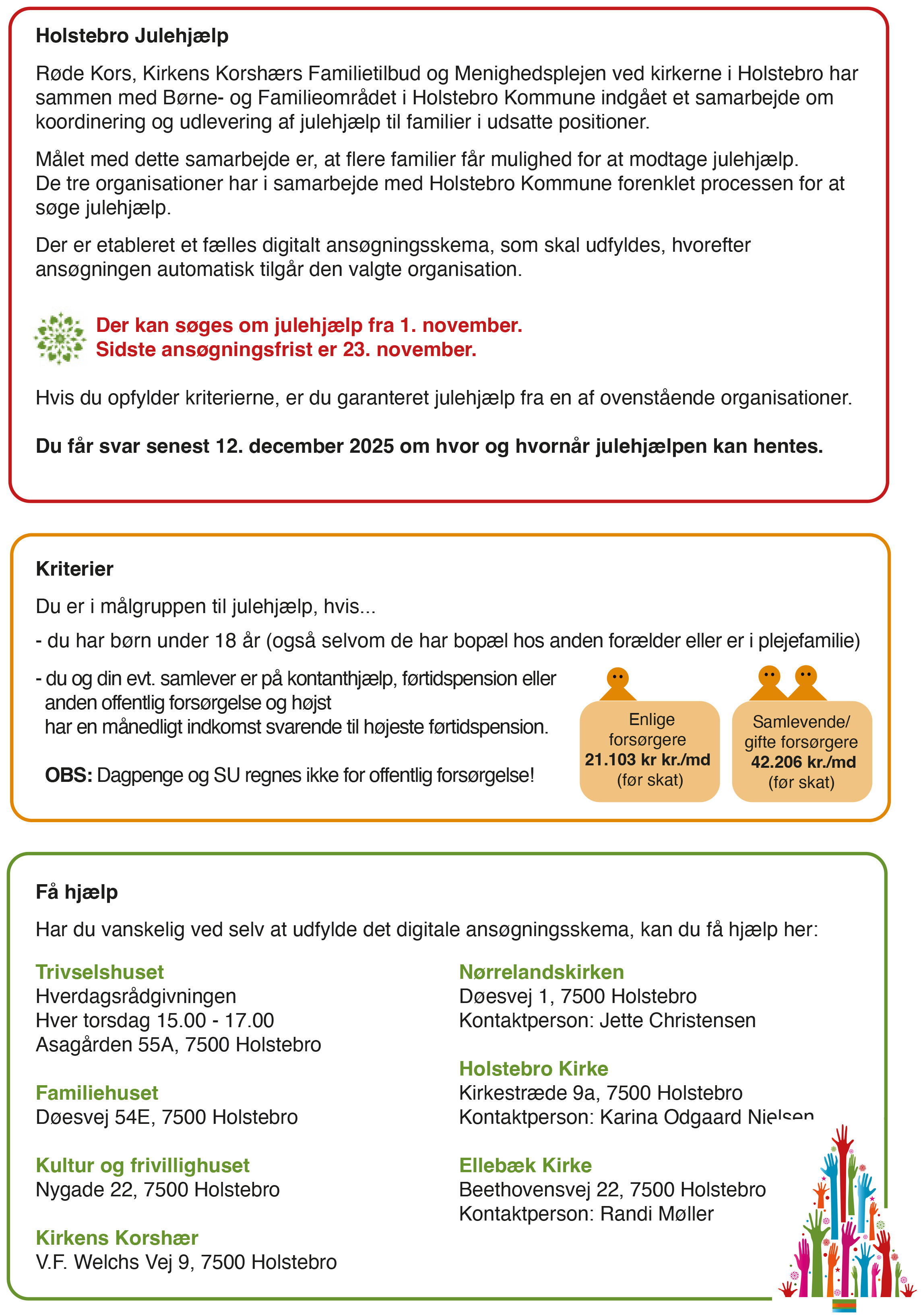 Igen i år har menighedsplejerne i de tre kirker i Holstebro, Røde Kors og Kirkens Korshær sammen med Holstebro Kommune udarbejdet et digitalt ansøgningsskema.