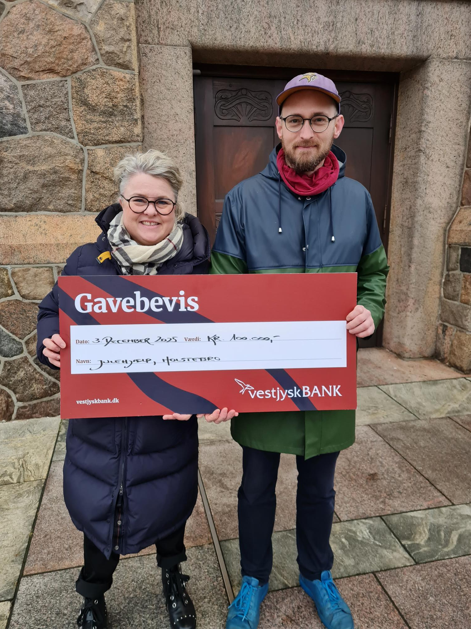 Og det er ikke kun Byskov Blik, der har støttet, han havde nemlig samlet en hel flok af lokale erhvervsdrivende fra Holstebro, som gerne ville hjælpe os. Det endte i, at de i alt har doneret 100.000 kr. til årets julehjælp!