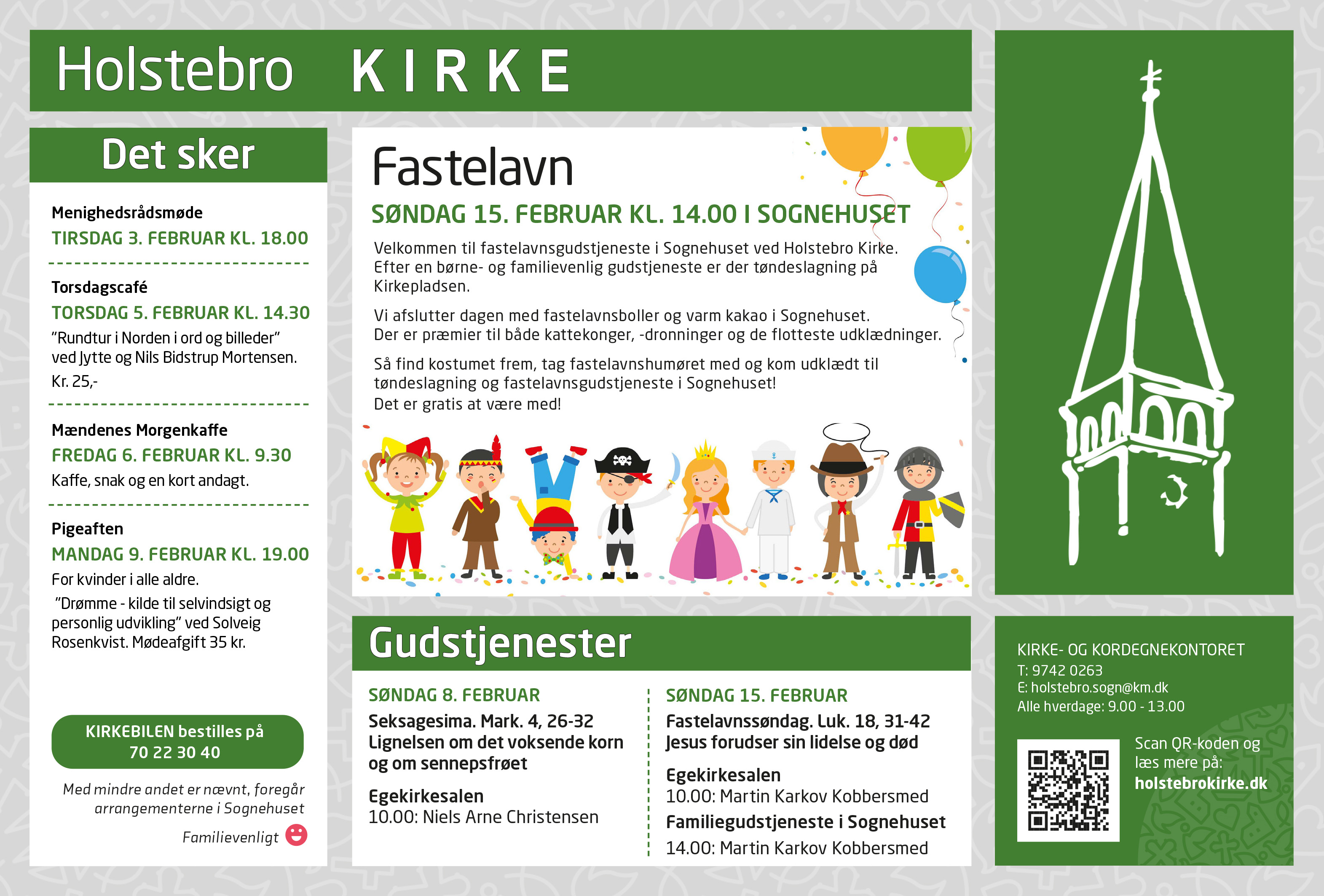 Hver uge har Holstebro Kirke en helside-annonce i Lokalavisen, som fortæller om kommende gudstjenester og arrangementer i Holstebro Kirke og i Sognehuset.